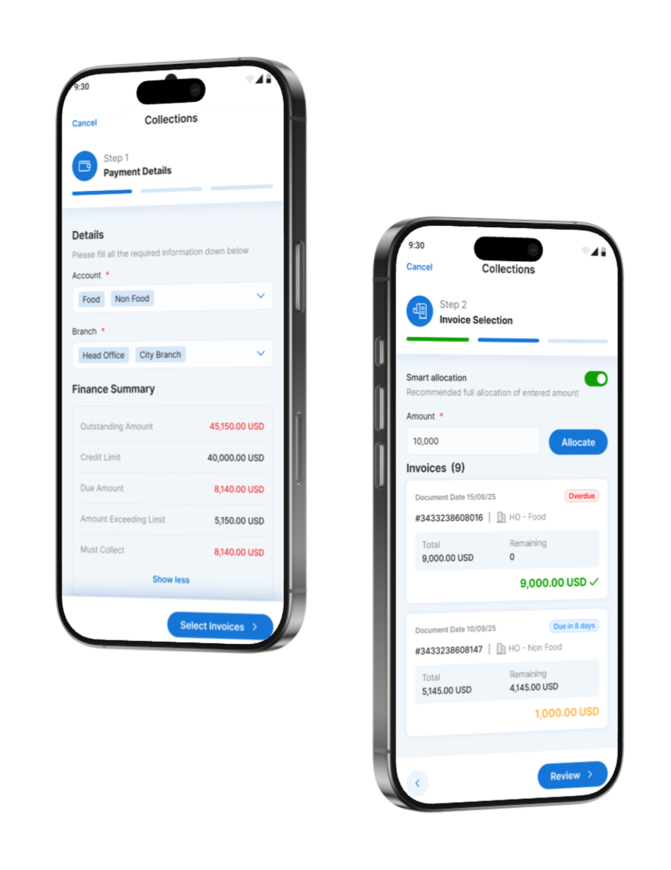 Access outstanding amounts, credit limits, and dues before collecting. View all accounts and branches under one customer for accurate and easy reconciliation
