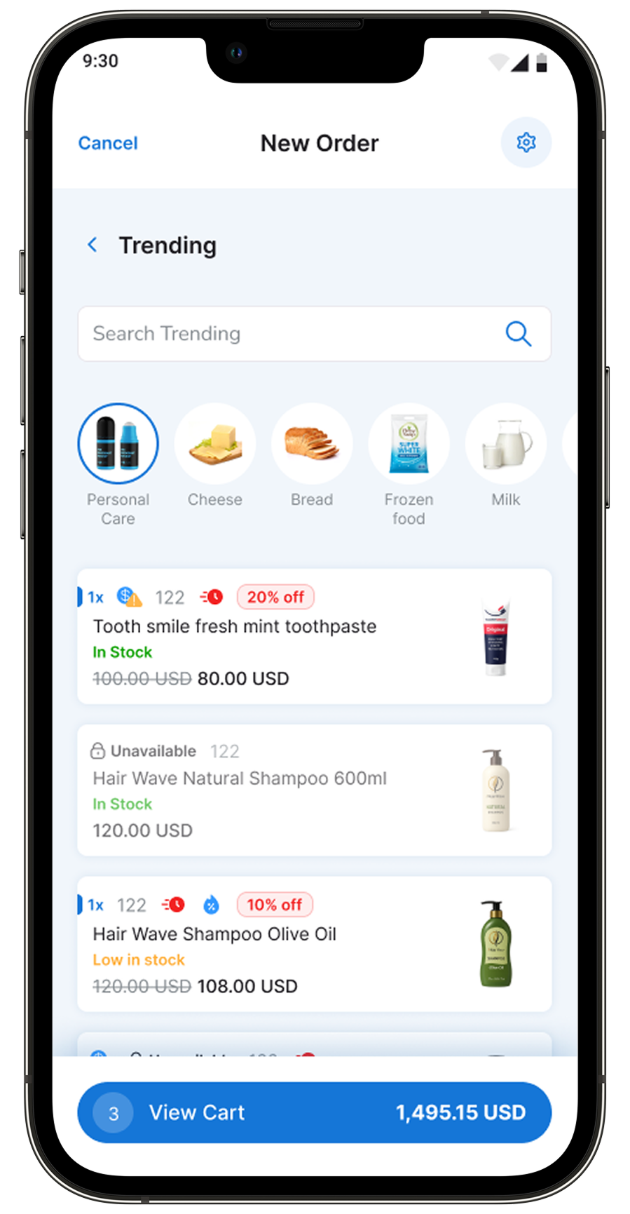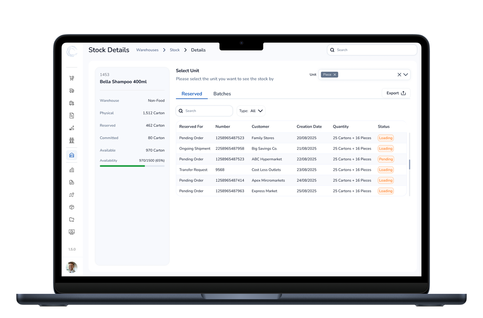 Track physical, reserved, and available quantities in real time. Every reservation and order updates instantly for precise decision-making